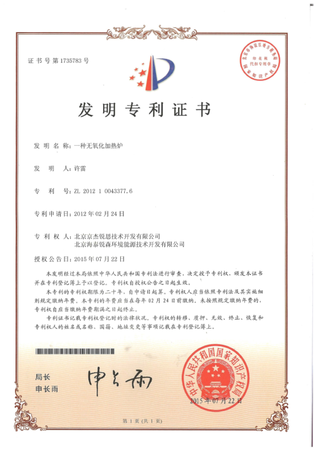 公司致力于冶金装备技术创新,工艺持续改进,在能源节约、废物循环利用等方面取得了多项科研成果,获得了多项国家专利,赢得了国内外客户好评。